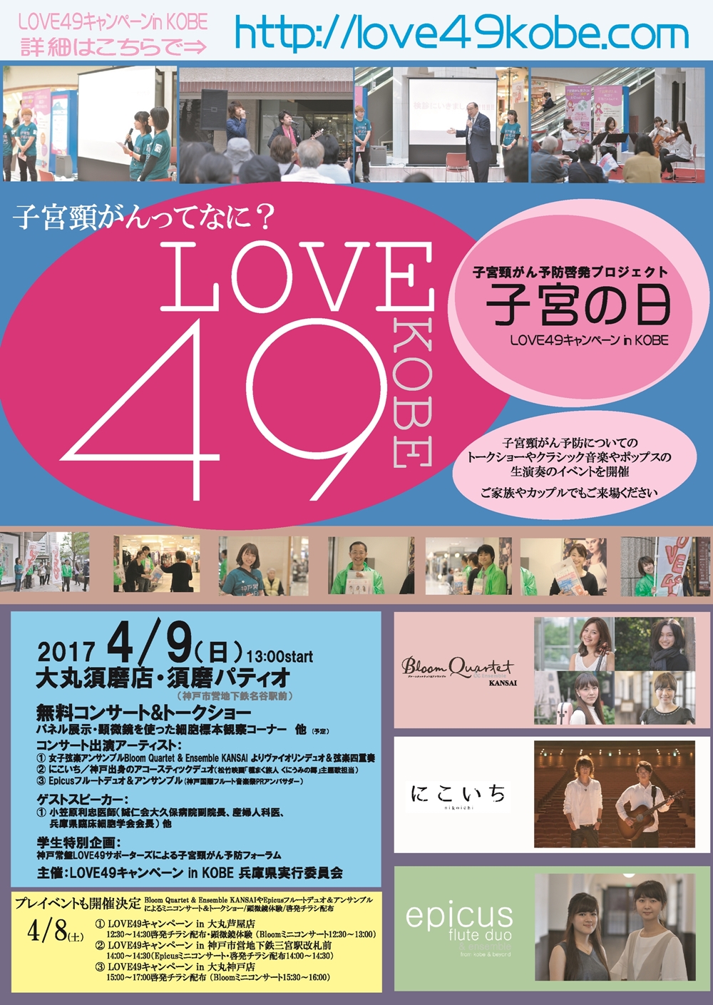 2017年は4月9日(日)神戸市須磨区の大丸須磨店・須磨パティオにて『子宮の日』LOVE49キャンペーン in KOBE~ミニコンサート&トークショーを開催します。