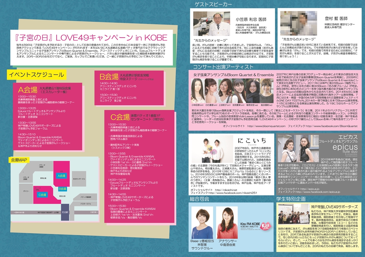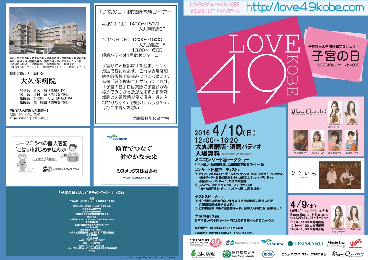2016年は4月10日(日)神戸市須磨区の大丸須磨店・須磨パティオにて『子宮の日』LOVE49キャンペーン in KOBE~ミニコンサート&トークショーを開催します。