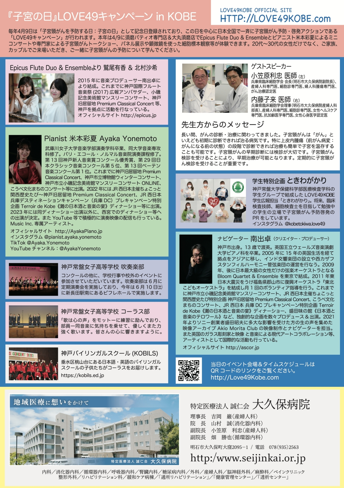 2015年は4月12日(日)北区のコアキタマチにて『子宮の日』LOVE49キャンペーン in KOBE~ミニコンサート&トークショーを開催します。