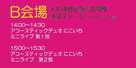 雨天の予報によりイベント出演者と会場に変更がございます。下記詳細をご覧ください。